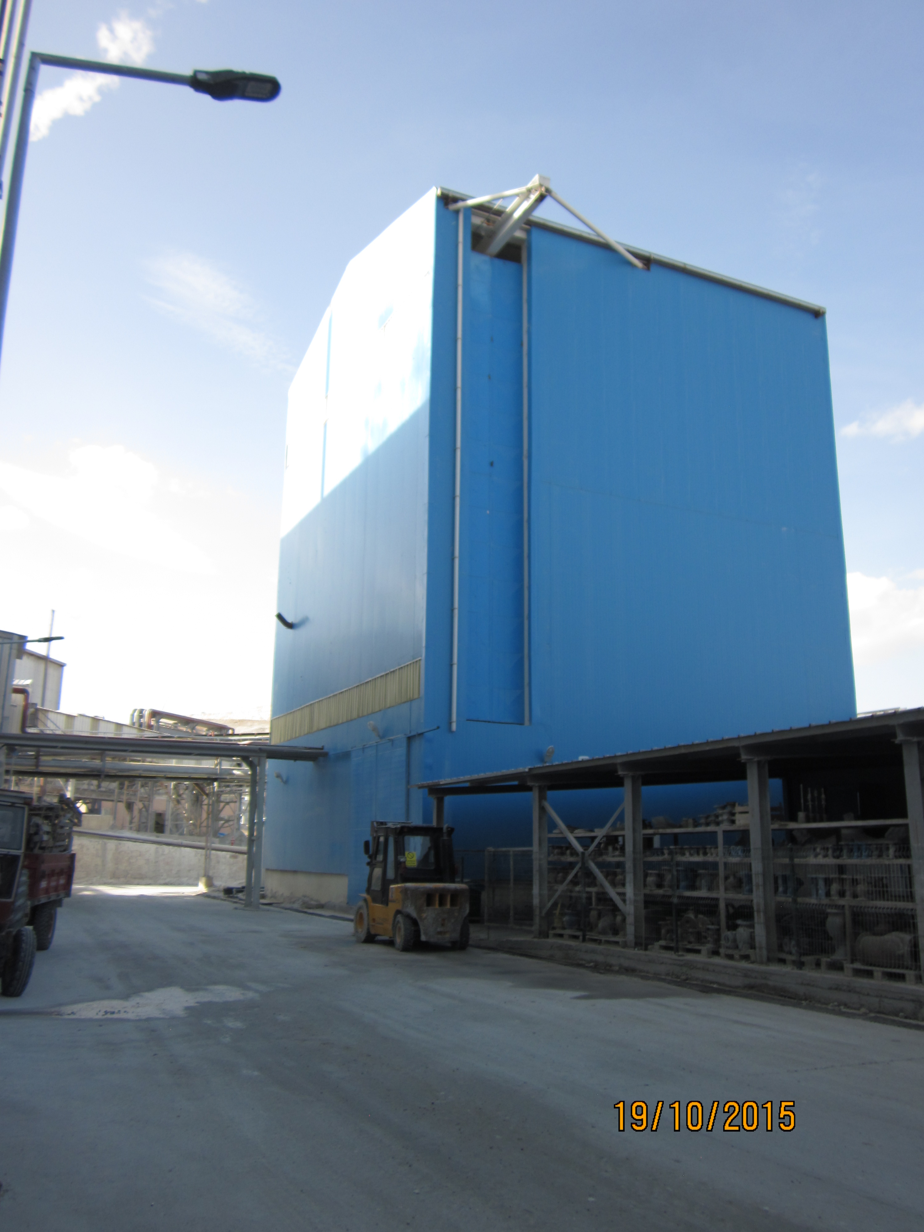 PROJECT DESCRIPTION : Raw-material storage building roof has24 m span and designed as double layer space frame structure. Total roofed area is 6100 m2. Foundations were designed as pile-plate combined structure.